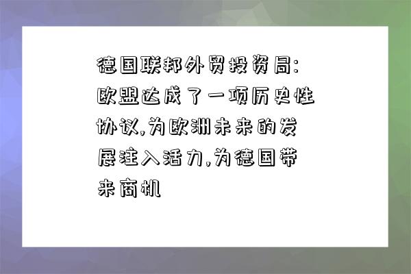 文章:(德国联邦外贸投资局:欧盟达成了一项历史性协议,为欧洲未来的发展注入活力,为德国带来商机),来源:网络整理,阅读原文。