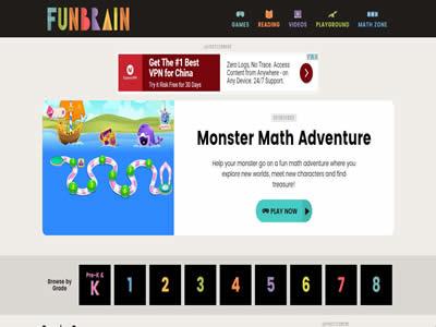 Funbrain教育网站提供儿童游戏、书籍和视频信息。FunBrain提供一系列学习数学、阅读能力和开发技能的互动游戏。儿童可以在安全的在线游戏环境中学习Fun Brain游乐场。