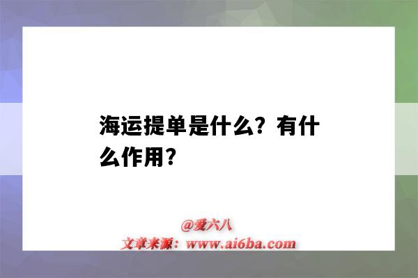 文章:(海运提单是什么?有什么作用?(什么是海运提单,有什么作用)),来源:,阅读原文。