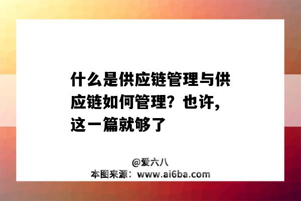 什么是供应链管理与供应链如何管理?也许,这一篇就够了(供应链管理怎么理解)若有[原创]标注,均为本站原创文章,任何内容仅供学习参考,未经允许不得转载,任何内容不得引用,文章若为转载文章,请注明作者来源,本站仅为分享知识,不参与商业活动,若有侵权请联系管理删除