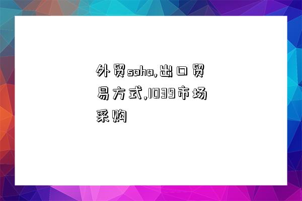 文章:(外贸soho,出口贸易方式,1039市场采购),来源:本站原创,阅读原文。