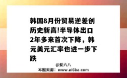 韩国8月份贸易逆差创历史新高!半导体出口2年多来首次下降,韩元美元汇率也进一步下跌韩国8月......
