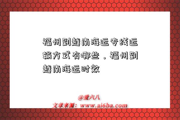 文章:(福州到越南海运专线运输方式有哪些,福州到越南海运时效),来源:,阅读原文。